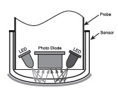 溶解氧分析仪测量探头最前端的传感器罩上覆盖有一层荧光物质,LED 光源发出的蓝光照射到荧光物质上,荧光物质被激发,并发出红光;一个光电池检测荧光物质从发射红光到回到基态所需要的时间。这个时间只和蓝光的发射时间以及氧气的多少有关,溶解氧分析仪探头另有一个LED 光源,在蓝光发射的同时发射红光,做为蓝光发射时间的参考。传感器周围的氧气越多,荧光物质发射红光的时间就越短。因此,计算出溶解氧的浓度。